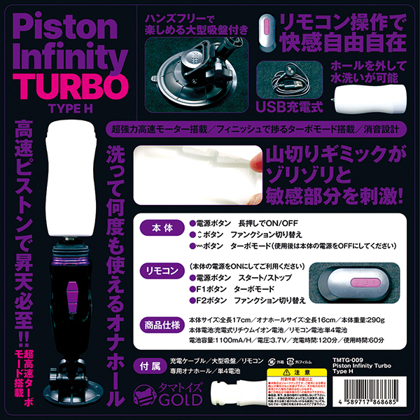 電動オナホも遂にここまで来ました!手持ちはもちろん、ハンズフリーでも楽しめる電動ピストンオナホール「Piston Infinity Turbo Type H」。