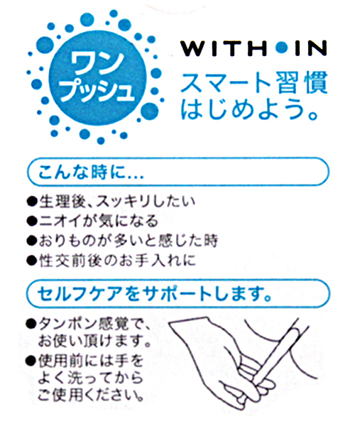 性交前後のお手入れや、生理やオリモノなどの気になるニオイに♪デリケートゾーンを内側から洗浄します。