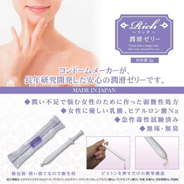コンドームメーカーが長年研究開発した潤滑ゼリー!潤い不足で悩む女性のために作った弱酸性処方で女性に優しい乳酸、ヒアルロン酸Na。