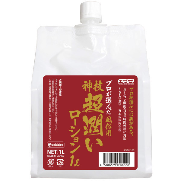 プロが選ぶには訳がある!風俗用・神技超潤いローションは風俗店に最適な大容量1Lパウチ入りの業務用1リットルサイズ。