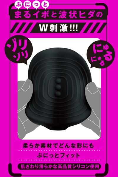 滑らかな手触りとプニッと質感が特徴の高品質シリコンを採用!内側にはイボとウェーブ状ヒダを設置し、フィットしながらダブルで刺激♪かける圧力によって快感の変化が楽しめる!9種類の強力振動が味わえるローター搭載、丸洗い可能なIPX7等級の完全防水製。