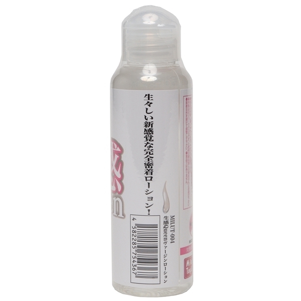無色で使いやすくサラサラとした粘度タイプの汎用ローション「生感Queen ヴァージンローション」です♪放課後のJ〇ちゃんの愛〇のサラサラ粘度を忠実に再現していて、生な感じでサラサラとしていて手コキからオナホやディルドなど、グッズとの相性も抜群!サラサラな愛液系なので繊細な構造を持ったオナホに使っても良いでしょう♪こちらは使い切りやすい120mlタイプです。