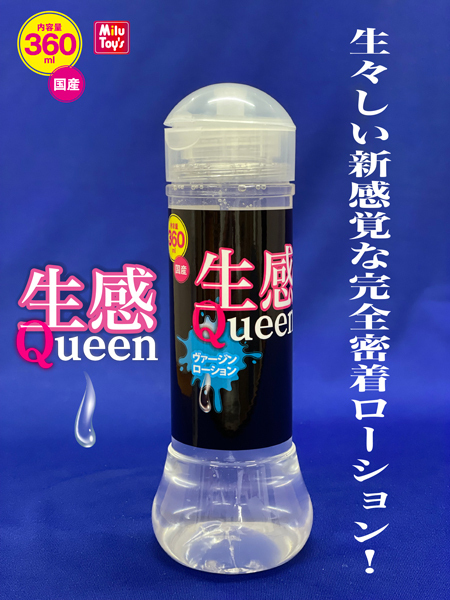 無色で透明!使いやすくてサラサラ粘度タイプの汎用ローション「生感Queen ヴァージンローション」です♪放課後のJ〇ちゃんの愛〇のサラサラ粘度を忠実に再現していて、生な感じでサラサラとしていて手コキやオナホ、ディルドなどグッズを使ったプレイに最適!サラサラな愛液系なので繊細な構造を持ったオナホに使っても良いですし、密着感にこだわったタイプなので汎用性が高いです♪こちらはたっぷり使える360mlタイプとなっています。