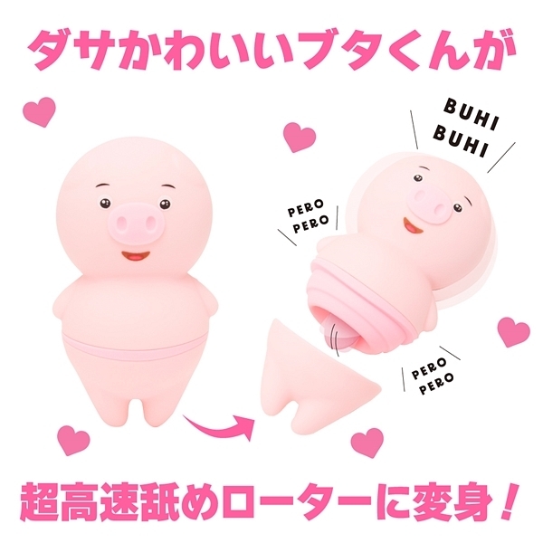 超高速!舌舐めローター!ダサかわいいブタくんが一生懸命舐めます!多彩なペロペロ6パターンで絶対絶頂!高品質ソフトシリコン使用のふんわりとろける柔らか舌!誰でもかんたん操作のワンプッシュ式!使用後も清潔に保てる生活防水IPX5。