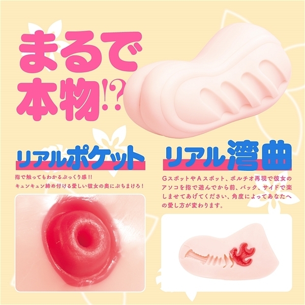 先も根元も挟み締め付ける名器の感触をHON−MONOで再現しました!!本物に近づけた平均サイズ、GスポットとAスポット、リアルに当たるポルチオ角度、波打つ肉壁、素材もこだわった「ふんわり柔肌とろける生感触」、非貫通ホールならではのバキューム性能で吸い付き、先も根元も挟み締め付けながら奥まで突き進む名器を再現!!大きな肉厚のあるヒダを突き進むごとにボコボコと挟み込まれる刺激を感じ、キュンキュン締め付けてくれる彼女にたくさん可愛がってもらってください。