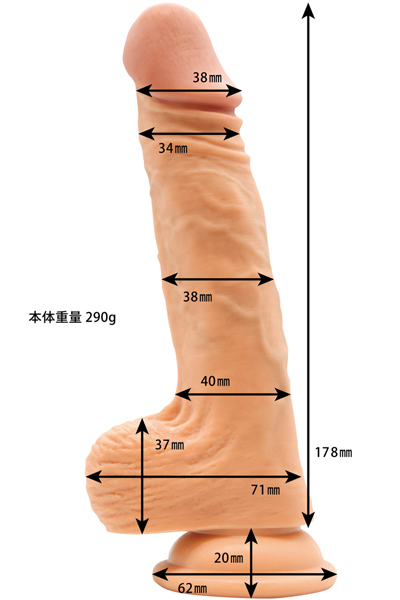 他のディルドにはない複雑かつ多彩な弾力のナマ質感!徹底された肉感のある弾力で興奮必至のプレイを体験♪底面には床や壁に吸着できる強力吸盤付き!こちらは程よい大きさのスタンダードサイズです。