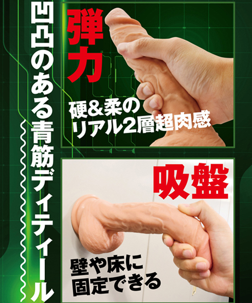 柔らかな外皮&バキバキの筋肉感のある硬芯、2種類の素材を使用した男根を感じさせる超リアルな吸盤付ディルド。