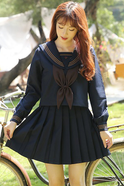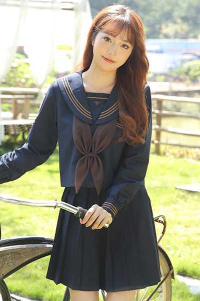 > <malymoon>紺×茶クラシック長袖セーラー服